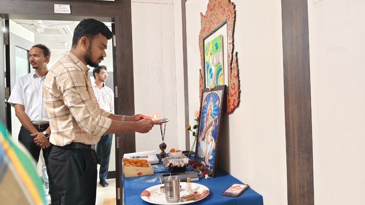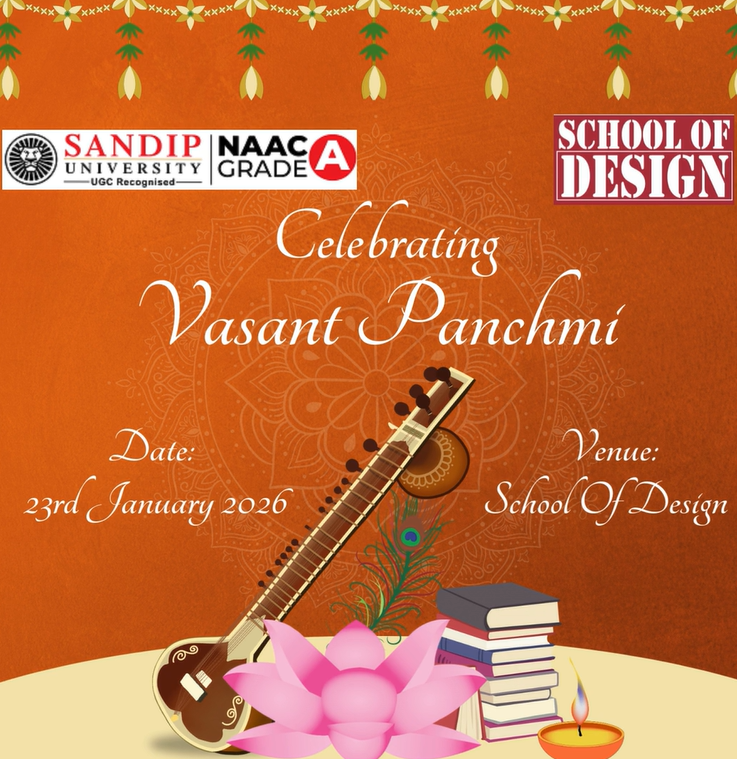 Event Detail: The School of Design celebrated Saraswati Poojan on the auspicious occasion of Vasant Panchami with devotion and enthusiasm. The event was organized to seek the blessings of Goddess Saraswati, the embodiment of knowledge, wisdom, art, and creativity. Faculty members and students participated in the poojan with reverence, offering prayers and floral tributes. The celebration reflected the institute’s commitment to nurturing learning, creativity, and cultural values within the academic environment. The occasion created a serene and inspiring atmosphere, encouraging students to embrace knowledge and artistic excellence.